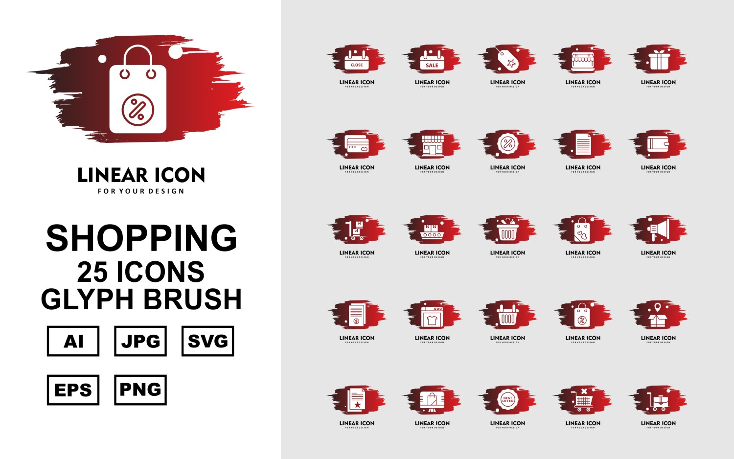 Download Набор иконок "25 Premium Shopping Glyph Brush Pack Icon Set" / 25 Premium Shopping Glyph Brush Pack Icon Set - Набор иконок на тему shopping label,ship,bag,box,document,best offer,trolley,shop,gift,credit card,percentage,wallet,cart,basketicon,icons