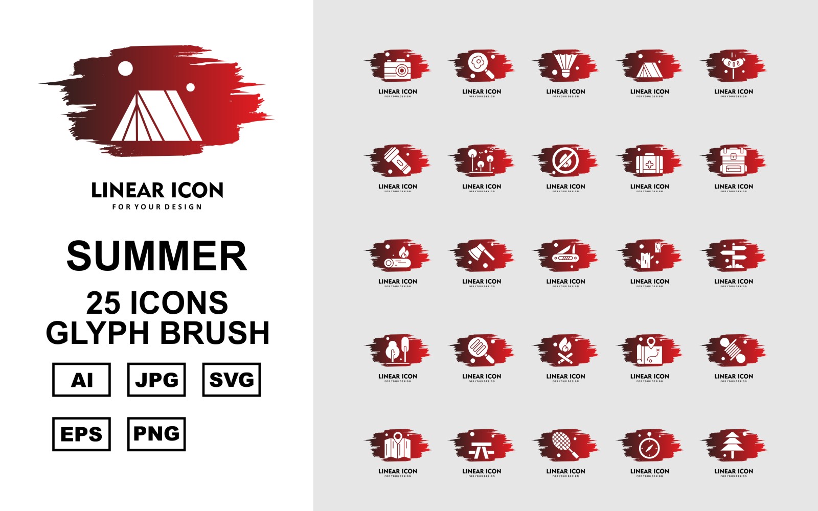 Download Набор иконок "25 Premium Summer Glyph Brush Icon Pack Set" / 25 Premium Summer Glyph Brush Icon Pack Set - Набор иконок на тему maps camera,axe,location,rope,map,outdoor,racket,gps,tree,find,shuttlecock,tent,hotdog,flashlight,fire,first aid,backpack,fire wood,icon,icons
