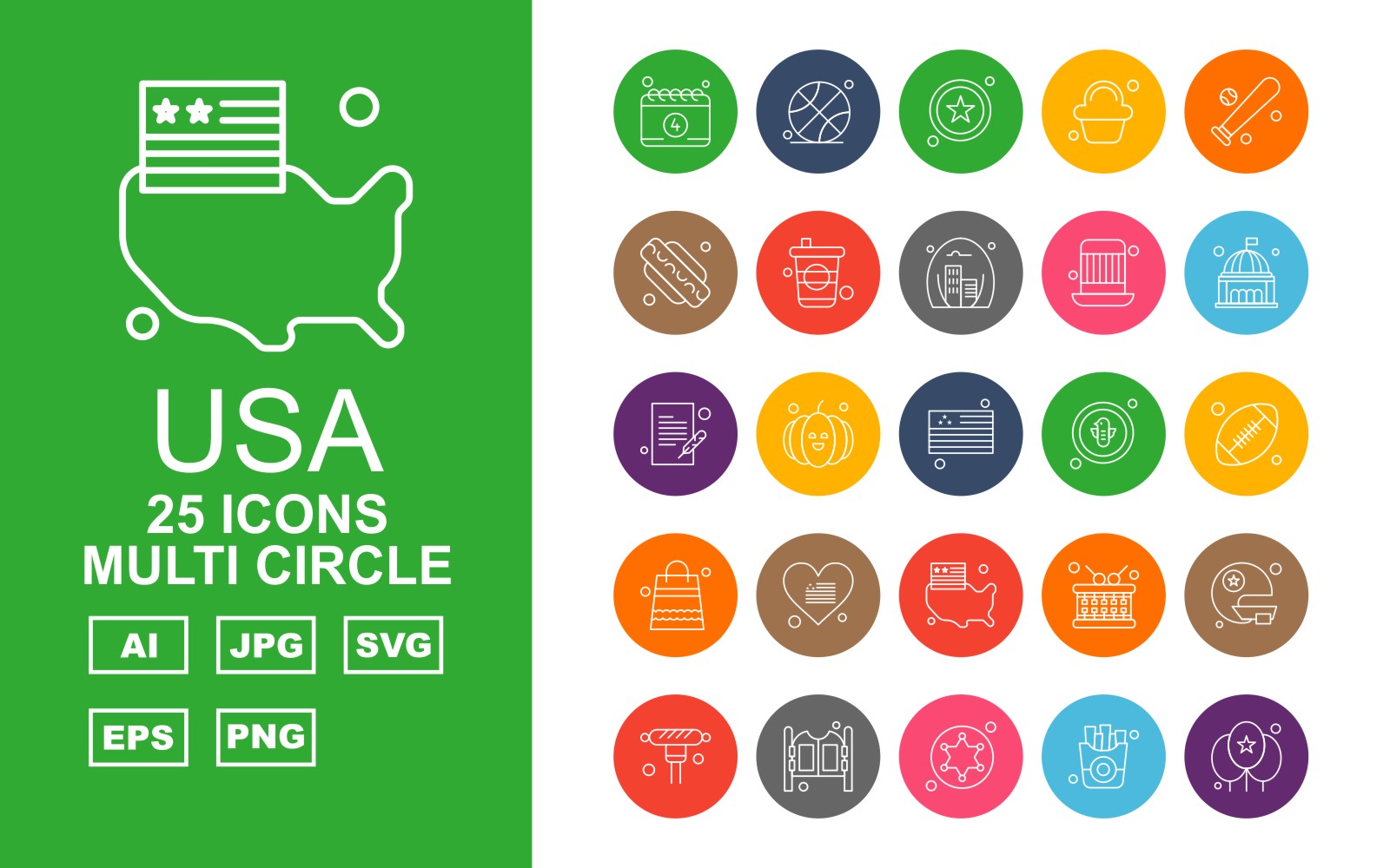 Download Набор иконок "25 Premium USA Multi Circle Iconset" / 25 Premium USA Multi Circle Iconset - Набор иконок на тему food calendar,pumpkin,drum,helmet,sport,door,star,fries,balloon,ball,hotdog,baseball,cupcake,fast,cap,washington,document,flag,bird,rugby