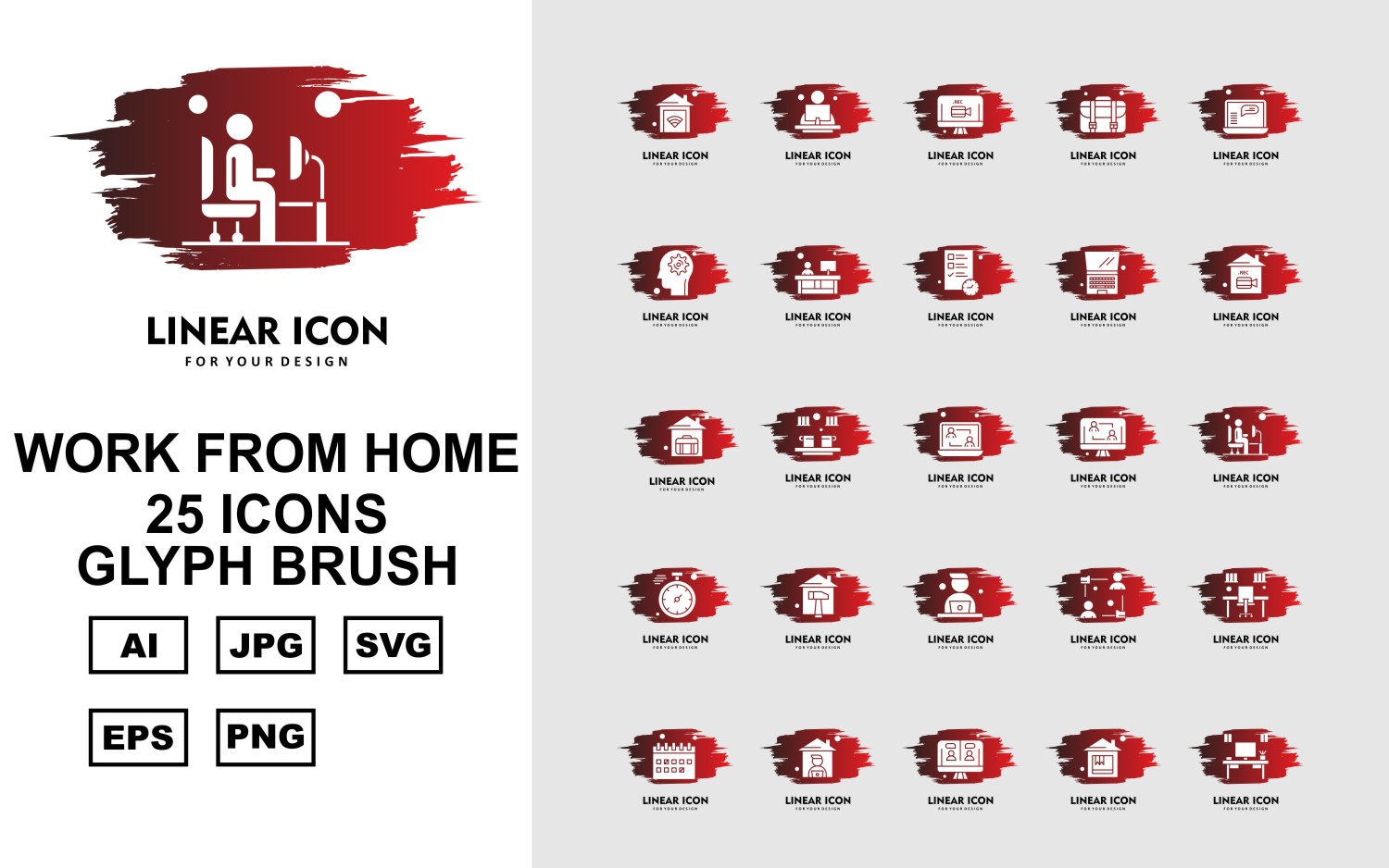 Download Набор иконок "25 Premium Work From Home Glyph Brush Icon Pack Set" / 25 Premium Work From Home Glyph Brush Icon Pack Set - Набор иконок home,offee,avatar,office,calendar,lcd,table,briefcase,laptop,setting,document,stopwatch,icon,icons