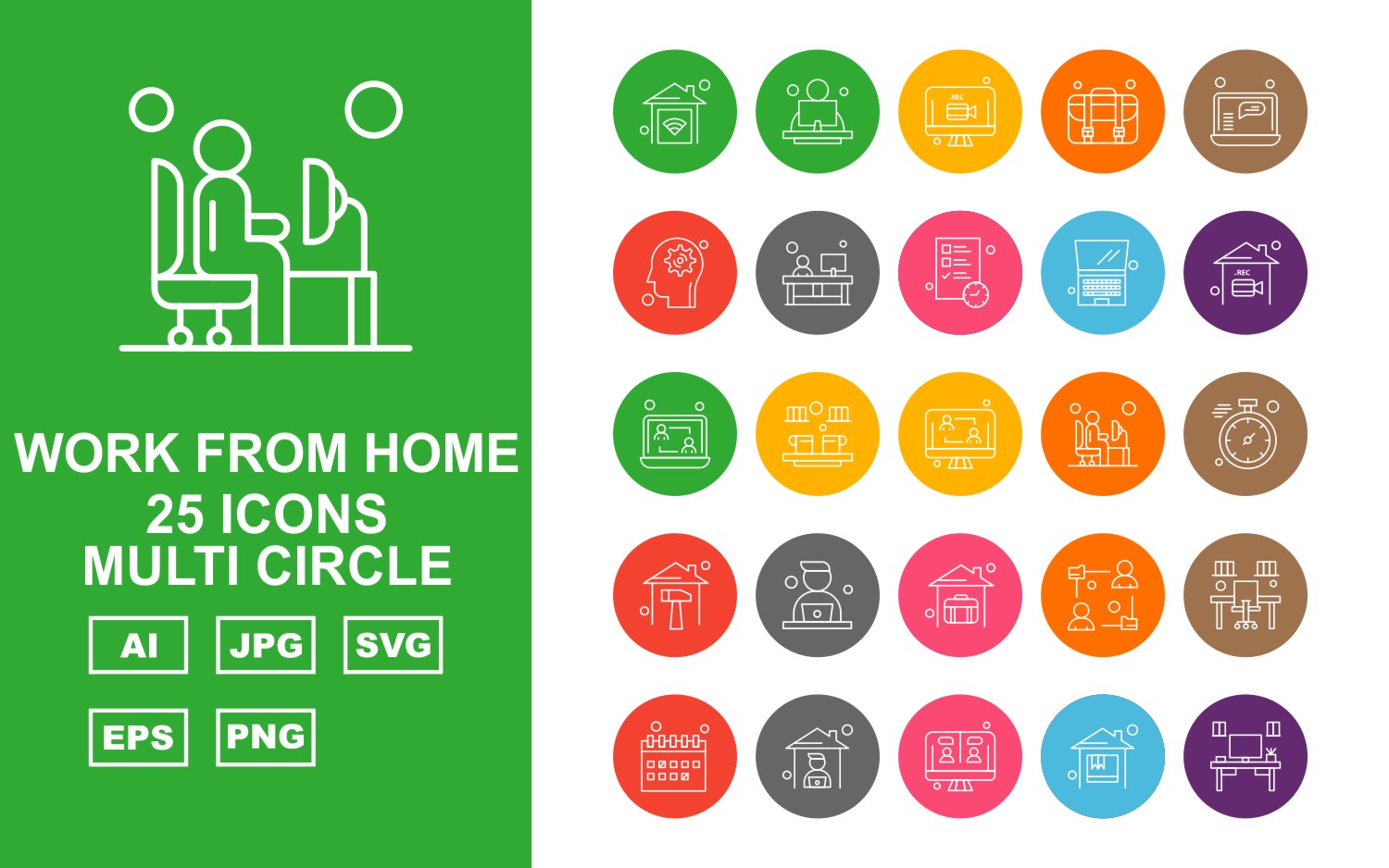 Download Набор иконок "25 Premium Work From Home Multi Circle Icon Pack Set" / 25 Premium Work From Home Multi Circle Icon Pack Set - Набор иконок home,offee,avatar,office,calendar,lcd,table,briefcase,laptop,setting,document,stopwatch,icon,icons