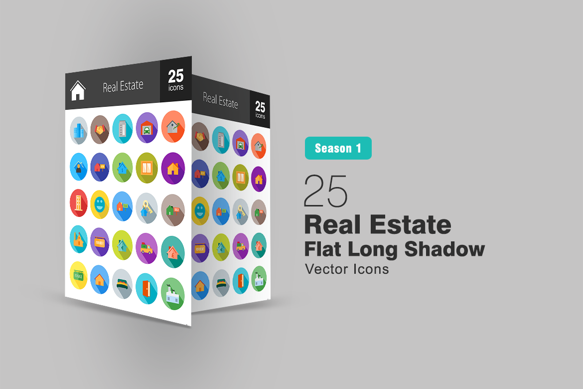 Download Набор иконок "25 Real Estate Flat Long Shadow Icon Set" / 25 Real Estate Flat Long Shadow Icon Set - Набор иконок на тему графика real estate icon property business housing house home rent sale shipment factory bedroom door window mall building customer apartment iconbunny