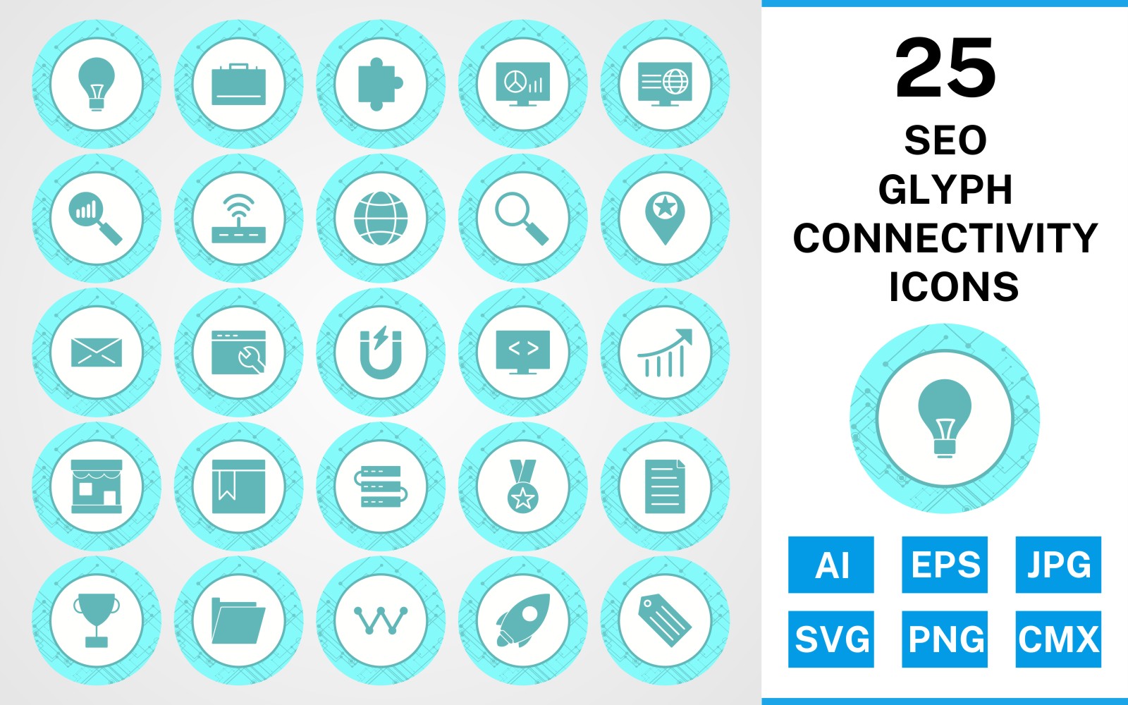 Download Набор иконок "25 Seo Glyph Connectivity Icon Set" / 25 Seo Glyph Connectivity Icon Set - Набор иконок на тему business set,file,icon,icons,glyph,vector,sign,symbol,pictogram,connectivity,seo,bulb,search,web,launch,award,servers,webpage,folder,email
