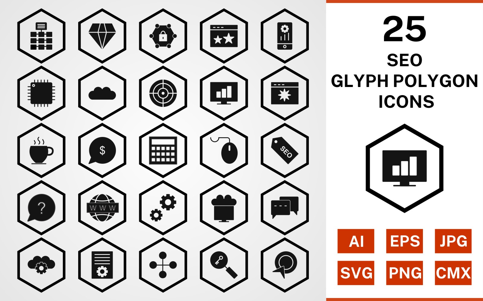 Download Набор иконок "25 Seo Glyph Polygon Icon Set" / 25 Seo Glyph Polygon Icon Set - Набор иконок на тему network set,file,icon,icons,glyph,vector,sign,symbol,pictogram,polygon,seo,network,settings,stats,diamond,conversation,starred,target,processor