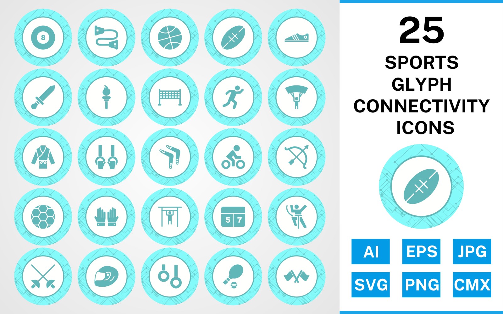 Download Набор иконок "25 Sports And Games Glyph Connectivity Icon Set" / 25 Sports And Games Glyph Connectivity Icon Set - Набор иконок на тему sports set,file,icon,icons,glyph,vector,sign,symbol,pictogram,connectivity,sports,games,karate,rugby,pool,runner,tennis,racing,bow