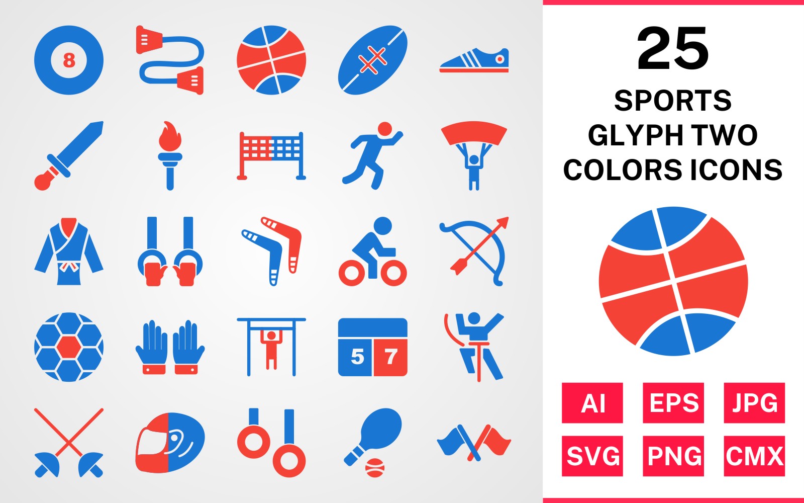Download Набор иконок "25 Sports And Games Glyph Two Colors Icon Set" / 25 Sports And Games Glyph Two Colors Icon Set - Набор иконок на тему sports set,file,icon,icons,glyph,vector,sign,symbol,pictogram,two,colors,sports,games,karate,rugby,pool,runner,tennis,racing,bow