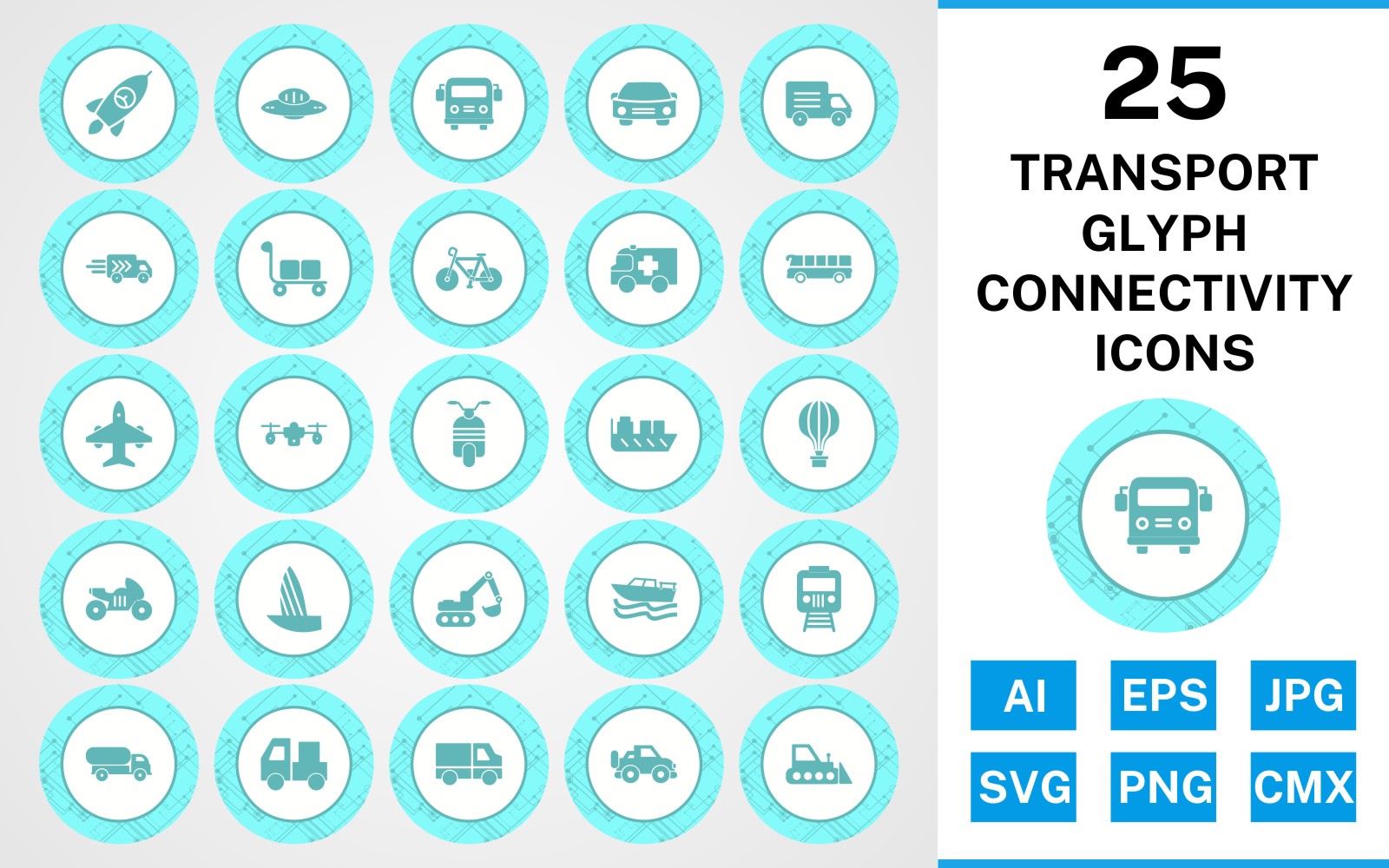 Download Набор иконок "25 Transport Glyph Connectivity Icon Set" / 25 Transport Glyph Connectivity Icon Set - Набор иконок на тему transport set,file,icon,icons,glyph,vector,sign,symbol,pictogram,connectivity,transport,car,bus,boat,van,carrier,jeep,airplane,scooter,drone
