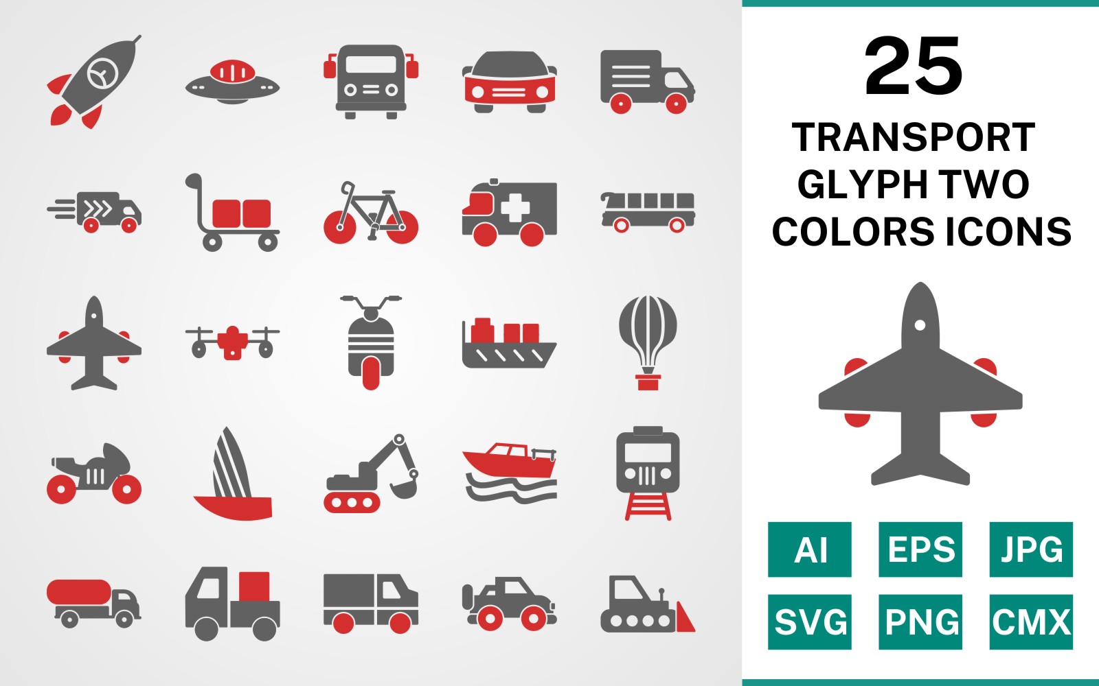 Download Набор иконок "25 Transport Glyph Two Colors Icon Set" / 25 Transport Glyph Two Colors Icon Set - Набор иконок на тему transport set,file,icon,icons,glyph,vector,sign,symbol,pictogram,two colors,transport,car,bus,boat,van,carrier,jeep,airplane,scooter,drone