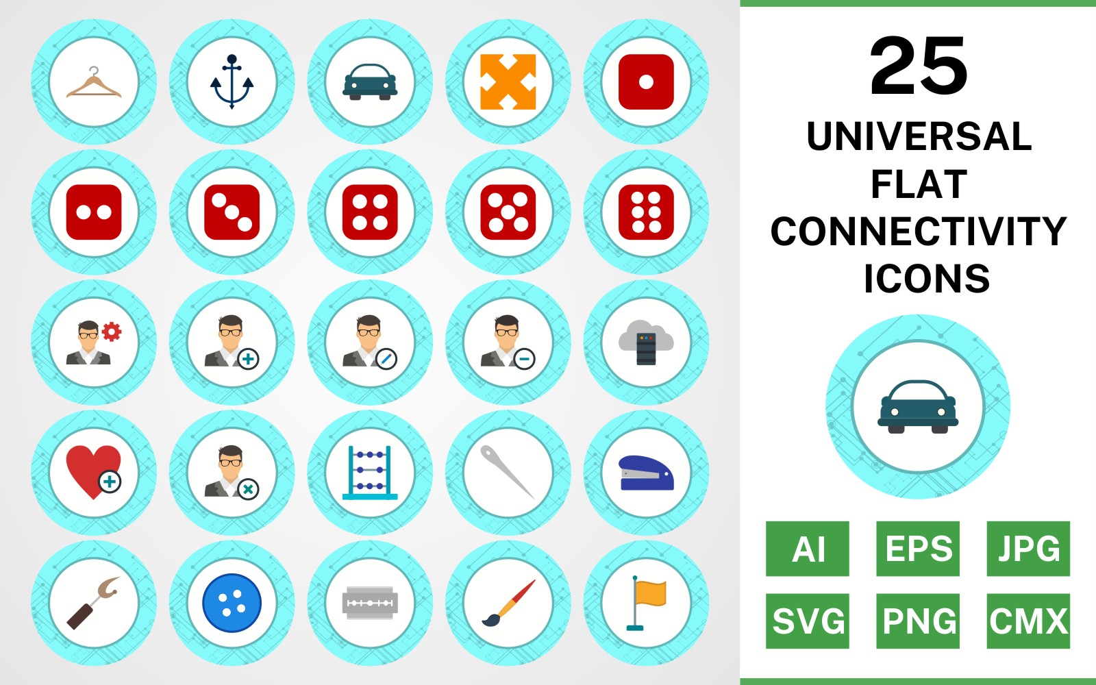 Download Набор иконок "25 Universal Flat Connectivity Icon Set" / 25 Universal Flat Connectivity Icon Set - Набор иконок set,file,icon,icons,flat,vector,sign,symbol,pictogram,connectivity,universal,hanger,dice six,flag,needle,edit profile,staper,button,blade