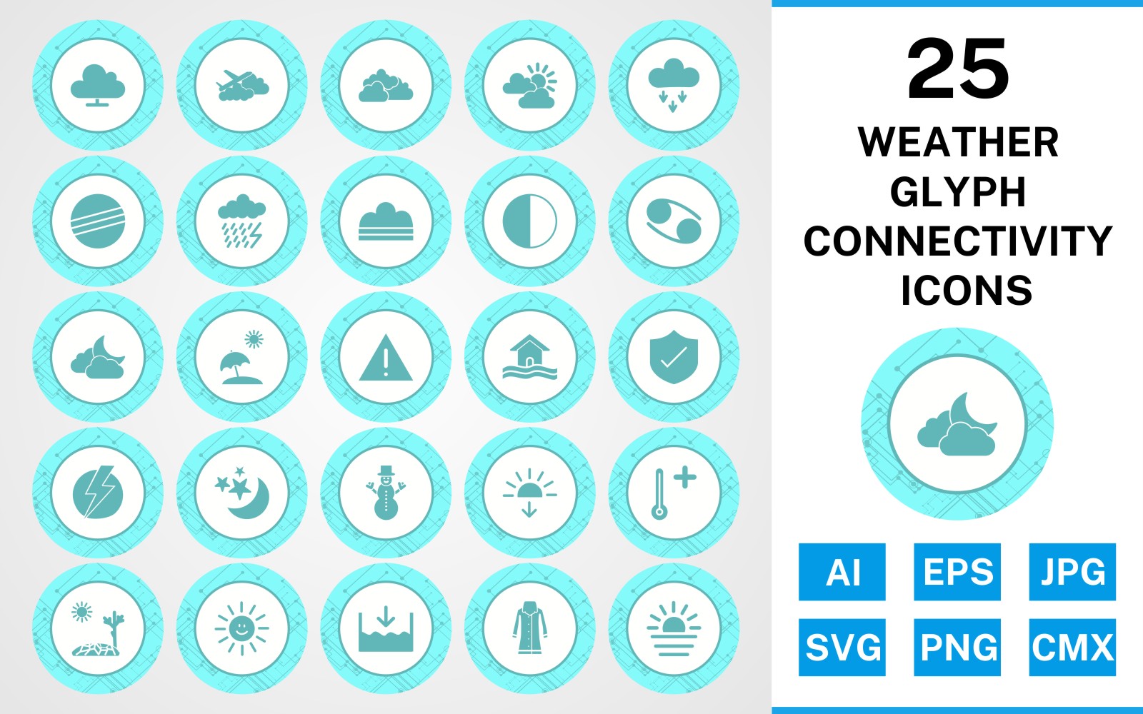 Download Набор иконок "25 Weather Glyph Connectivity Icon Set" / 25 Weather Glyph Connectivity Icon Set - Набор иконок на тему weather set,file,icon,icons,glyph,vector,sign,symbol,pictogram,connectivity,weather,cloudy,hot,sunset,sheild,fog,beach umbella,snowman,dark ray,rain coat