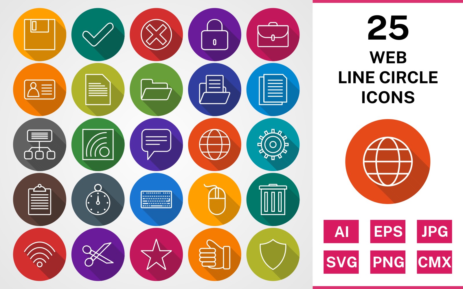 Download Набор иконок "25 WEB LINE CIRCLE SHADOWED PACK Icon Set" / 25 WEB LINE CIRCLE SHADOWED PACK Icon Set - Набор иконок на тему maps set,file,icon,icons,linear,line,vector,sign,symbol,pictogram,circle,web,folder,golbe,clipboard,cut,type,sitemap,documents,save