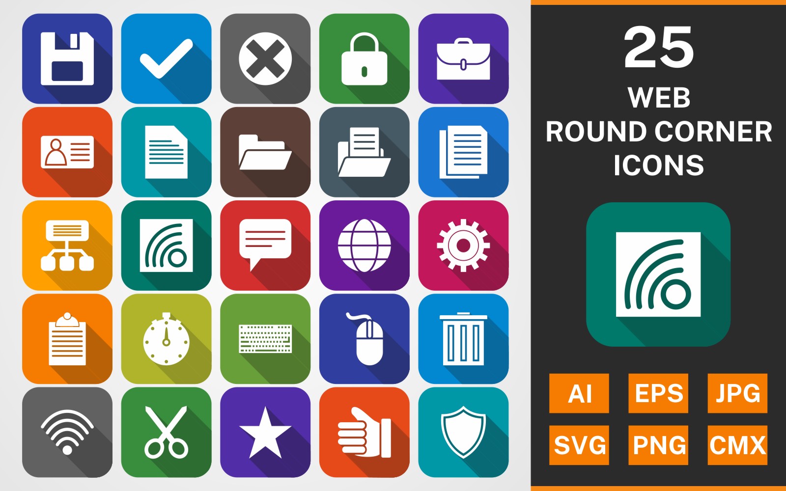 Download Набор иконок "25 WEB Round Corner Shadowed PACK Icon Set" / 25 WEB Round Corner Shadowed PACK Icon Set - Набор иконок set,file,icon,icons,linear,glyph,vector,sign,symbol,pictogram,web,save,type,wifi,star,like,briefcase,settings,stopwatch,keyboard