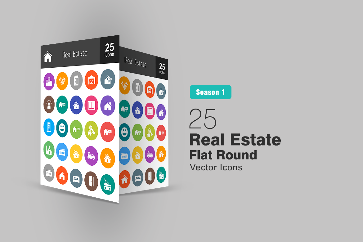 Download Набор иконок "26 Real Estate Flat Round Icon Set" / 26 Real Estate Flat Round Icon Set - Набор иконок на тему графика real estate icon property business housing house home rent sale shipment factory bedroom door window mall building customer apartment iconbunny