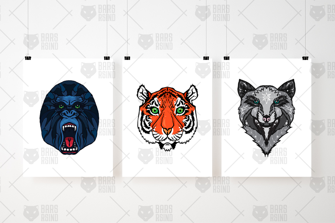 Download Иллюстрация "3 Wild Animals - Illustration" / 3 Wild Animals - Illustration - Иллюстрация на тему графика tiger,vector,mammal,power,illustration,art,wild,nature,animal,wildlife,cartoon,cat,mascot,predator,gorilla,monkey,dog,wolf,print,free
