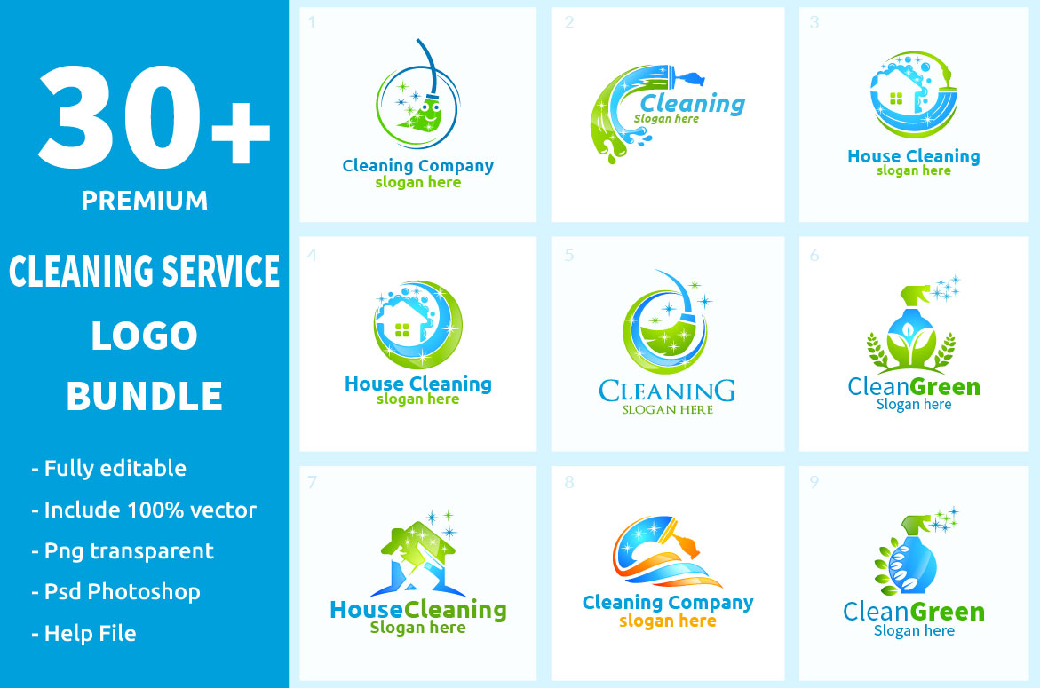 Download Шаблон логотипа "30+ Cleaning Service Logo Bundle" / 30+ Cleaning Service Logo Bundle - Шаблон логотипа на тему графика cleaning,logo,maid,service,housework,vector,icon,house,wash,broom,domestic,work,equipment,illustration,sign,household,brush,dust,isolated,cleaner