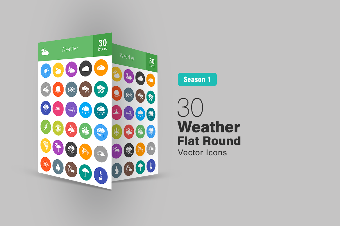 Download Набор иконок "30 Weather Flat Round Icon Set" / 30 Weather Flat Round Icon Set - Набор иконок на тему графика weather icon sun wind water cloud cloudy windy rain rainy cyclone umbrella snow snowflake thunderstorm thunder sky moon iconbunny flat
