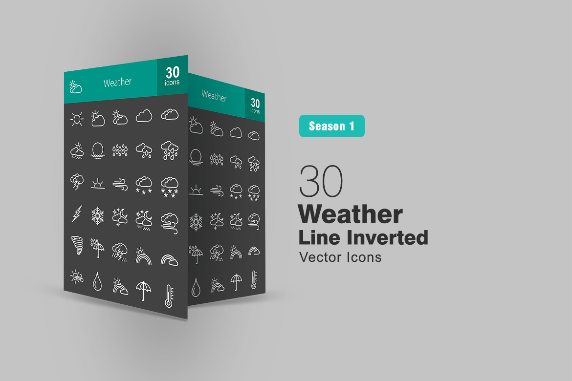 Download Набор иконок "30 Weather Line Inverted Icon Set" / 30 Weather Line Inverted Icon Set - Набор иконок на тему графика weather icon sun wind water cloud cloudy windy rain rainy cyclone umbrella snow snowflake thunderstorm thunder sky moon iconbunny flat