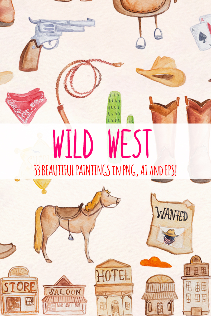 Download Иллюстрация "33 Cowboy Watercolor Elements - Wild West - Illustration" / 33 Cowboy Watercolor Elements - Wild West - Illustration - Иллюстрация на тему графика watercolour watercolor painting blog graphics clip art commercial use wild west cowboy hat boots guns spindle weed