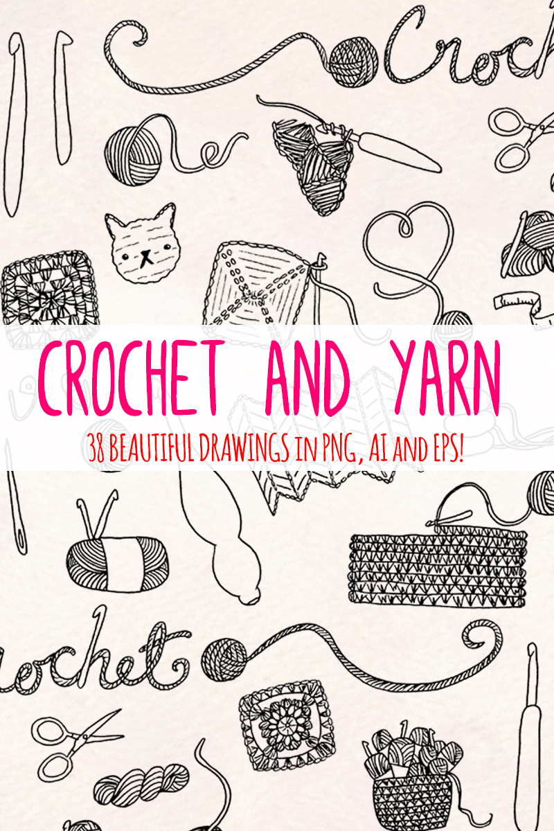Download Иллюстрация "33 Crochet and Yarn Themed - Illustration" / 33 Crochet and Yarn Themed - Illustration - Иллюстрация на тему графика graphics blog illustration vector commercial use hand drawn line art crochet yarn granny square hank ball of hook
