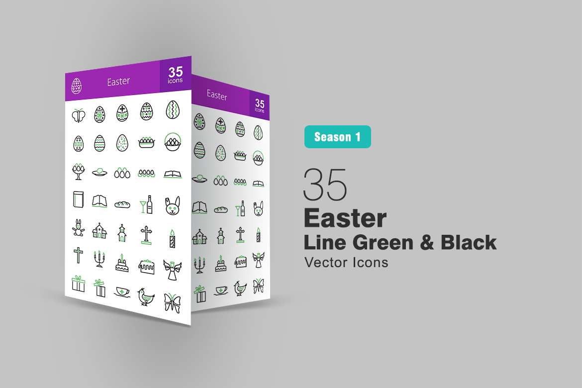 Download Набор иконок "35 Easter Line Green & Black Icon Set" / 35 Easter Line Green & Black Icon Set - Набор иконок на тему графика book icon bunny easter butterfly egg candle rabbit decoration celebration chicken church christian angel drinks present eggs basket iconbunny flat
