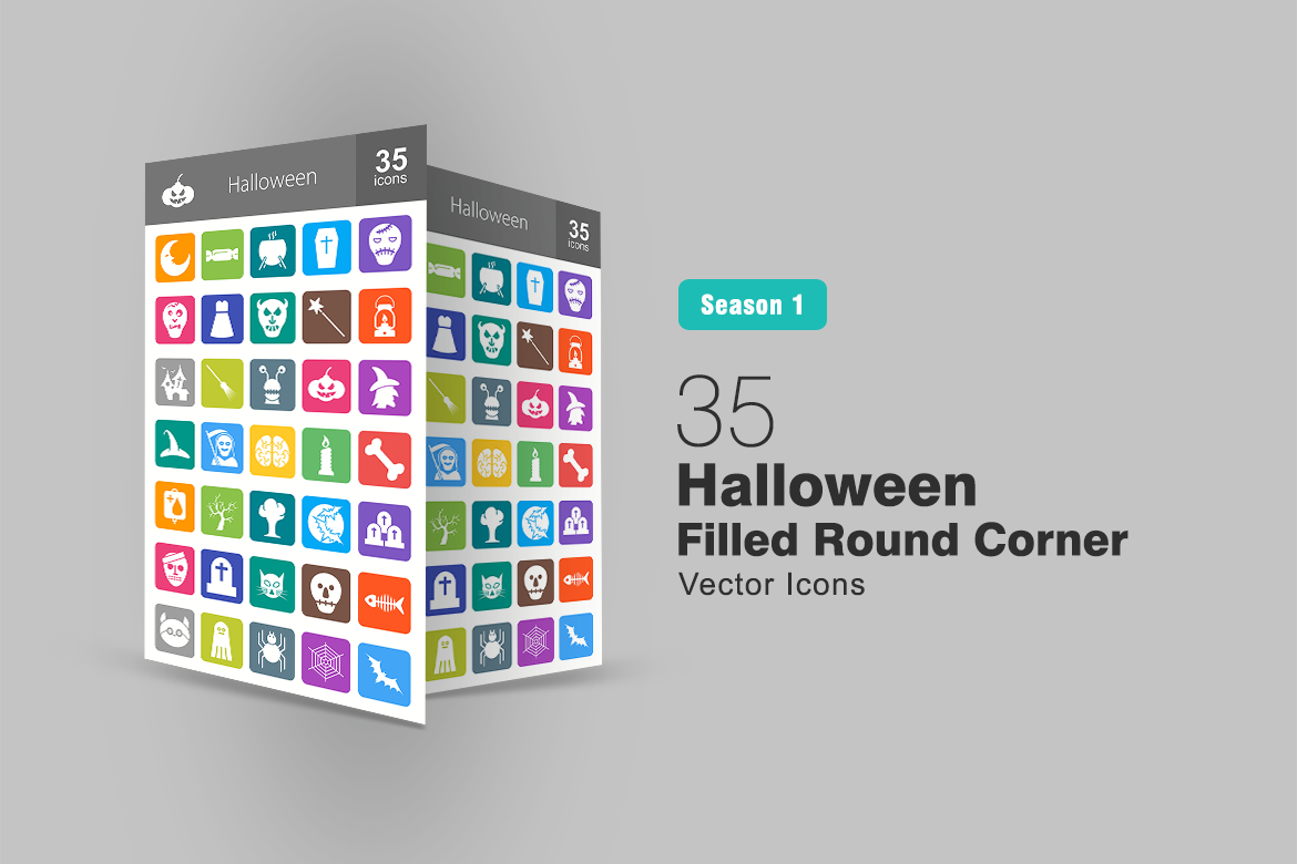 Download Набор иконок "35 Halloween Filled Round Corner Icon Set" / 35 Halloween Filled Round Corner Icon Set - Набор иконок на тему графика halloween icon bat candle cauldron ghost grave graveyard monster zombie lantern magic wand haunted house pumpkin witch wizard coffin skeleton
