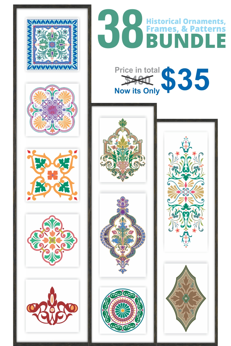 Download Иллюстрация "38 Ornaments, Frames, Patterns Bundle - Illustration" / 38 Ornaments, Frames, Patterns Bundle - Illustration - Иллюстрация на тему графика