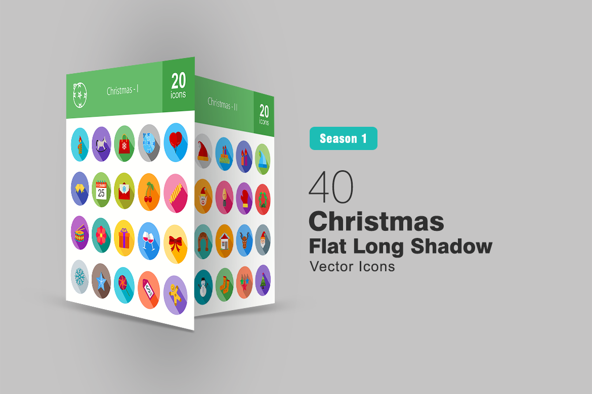 Download Набор иконок "40 Christmas Flat Long Shadow Icon Set" / 40 Christmas Flat Long Shadow Icon Set - Набор иконок на тему графика christmas icon celebration tree snow snowflake wreath decoration gifts presents santa claus candy star cherry ginger dinner cake iconbunny flat