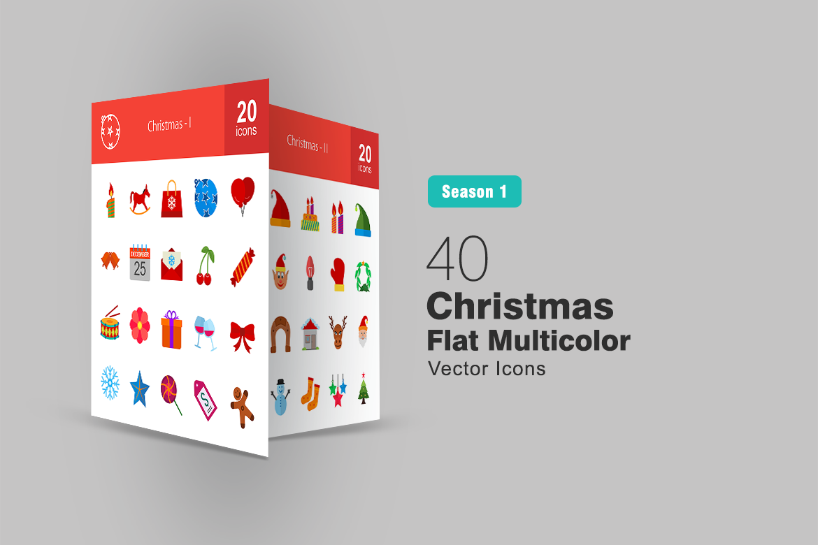 Download Набор иконок "40 Christmas Flat Multicolor Icon Set" / 40 Christmas Flat Multicolor Icon Set - Набор иконок на тему графика christmas icon celebration tree snow snowflake wreath decoration gifts presents santa claus candy star cherry ginger dinner cake iconbunny flat