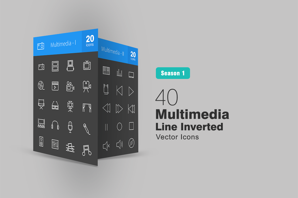 Download Набор иконок "40 Multimedia Line Inverted Icon Set" / 40 Multimedia Line Inverted Icon Set - Набор иконок на тему графика camera icon roll television play media multimedia music video speaker volume stage microphone piano film controls earphones iconbunny flat icons