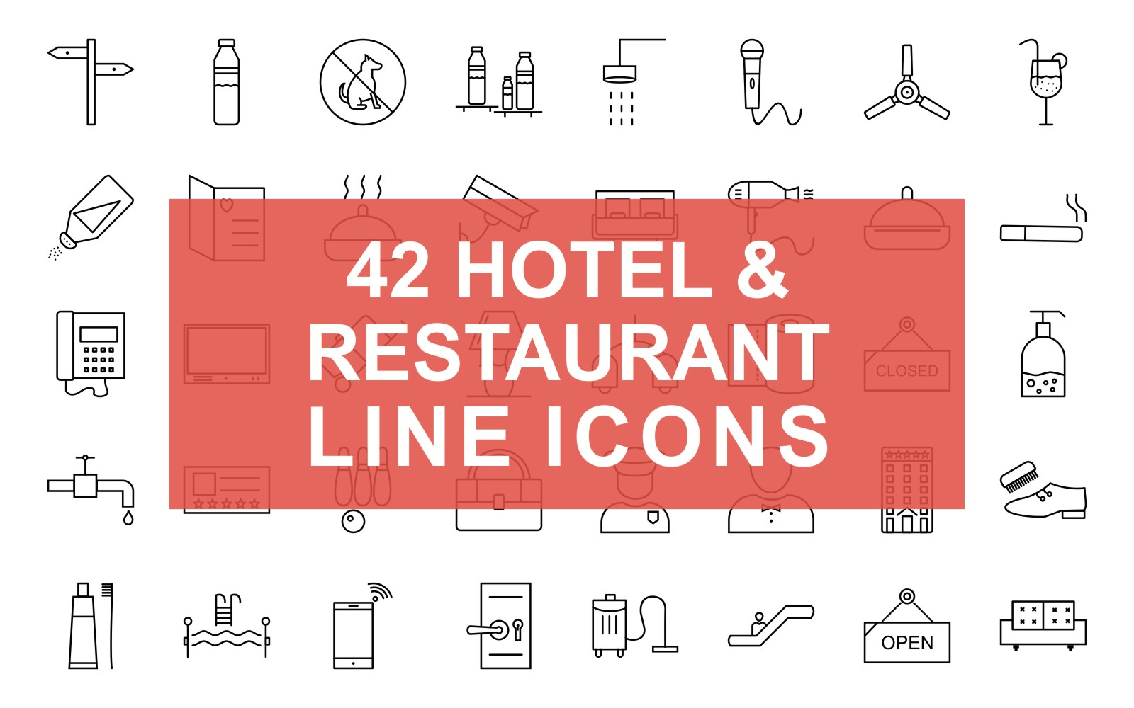 Download Набор иконок "42 Hotel & Restaurant Line Black Icon Set" / 42 Hotel & Restaurant Line Black Icon Set - Набор иконок на тему графика hotel,&,restaurant,direction,cctv,camera,closed,tag,tooth,brush,past,two,seats,atm,machine,fax,tea,cup,water,bottle