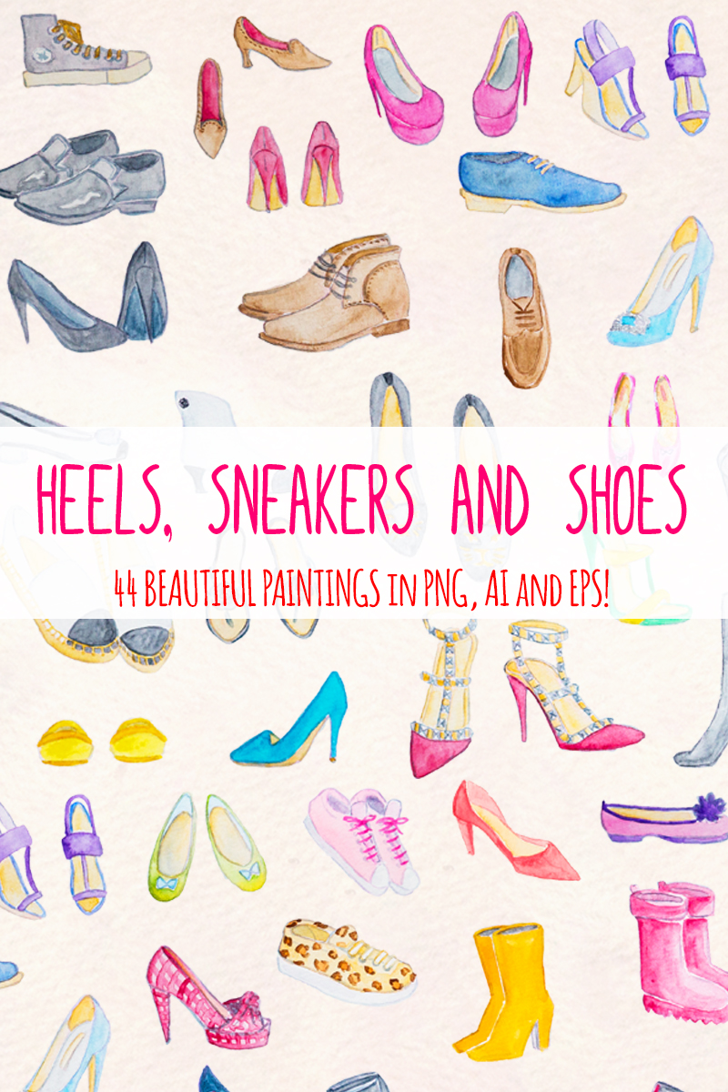 Download Иллюстрация "44 Watercolor Heels, Sneakers and Shoe - Illustration" / 44 Watercolor Heels, Sneakers and Shoe - Illustration - Иллюстрация на тему графика shoes clipart clip art fashion blogger watercolour heels high shoe stiletto stilettos red bottoms png ai