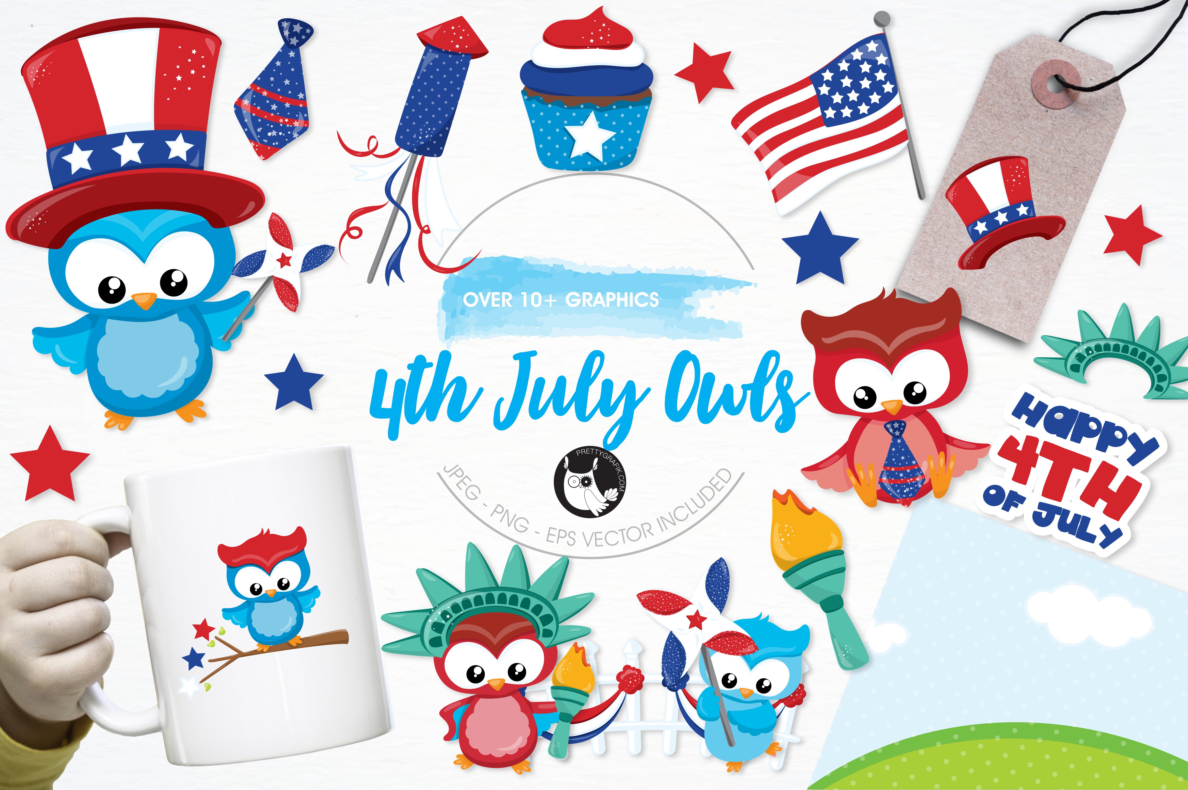 Download Vector "4th of July owls illustration pack - Vector Image" / 4th of July owls illustration pack - Vector Image - Vector на тему графика illustration,vector,graphics,clipart,clip art,icons,fireworks,cupcake,usa,owl,eps,prettygrafik,4th of july,independence day,statue of liberty,american flag