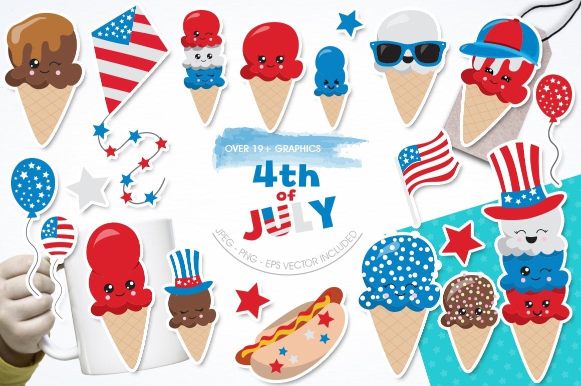 Download Vector "4th of July - Vector Image" / 4th of July - Vector Image - Vector на тему графика scrapbook,scrapbooking,clipart,clip art,july,ice-cream,prettygrafik,treats,vector art,4th of july,independence day,hotdog