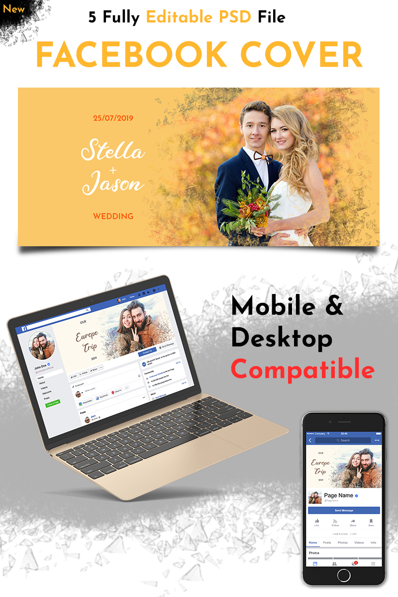 Download Шаблон для соцсетей "5 Multipurpose Facebook Cover Social Media Template" / 5 Multipurpose Facebook Cover Social Media Template - Шаблон для соцсетей на тему графика sale photographer photography hotel restaurant fb cover timeline facebook personal business agency studio marriage anniversary engagement travel holiday tour vacation