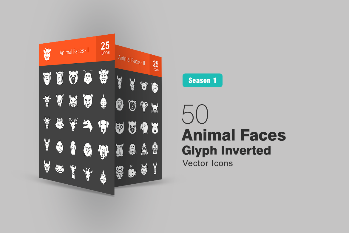 Download Набор иконок "50 Animal Faces Line Inverted Icon Set" / 50 Animal Faces Line Inverted Icon Set - Набор иконок на тему графика animals,icon,ape,bear,bee,buffalo,camel,cat,chicken,cow,deer,dog,donkey,duck,elephant,frog,gpat,horse,kangaroo,lion