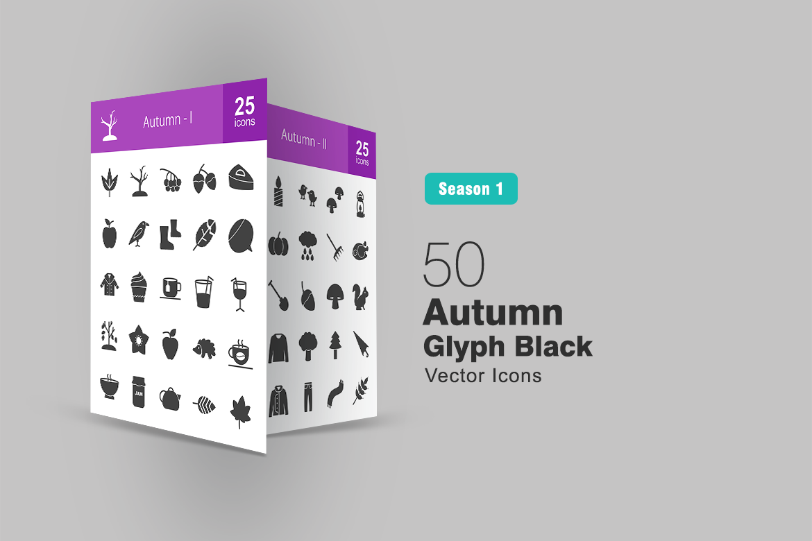 Download Набор иконок "50 Autumn Glyph Icon Set" / 50 Autumn Glyph Icon Set - Набор иконок на тему графика autumn,icon,tree,leaf,apple,pie,bird,boots,coat,coffee,muffin,drink,falling,leaves,flower,soup,kettle,candle,mushrooms,pumpkin