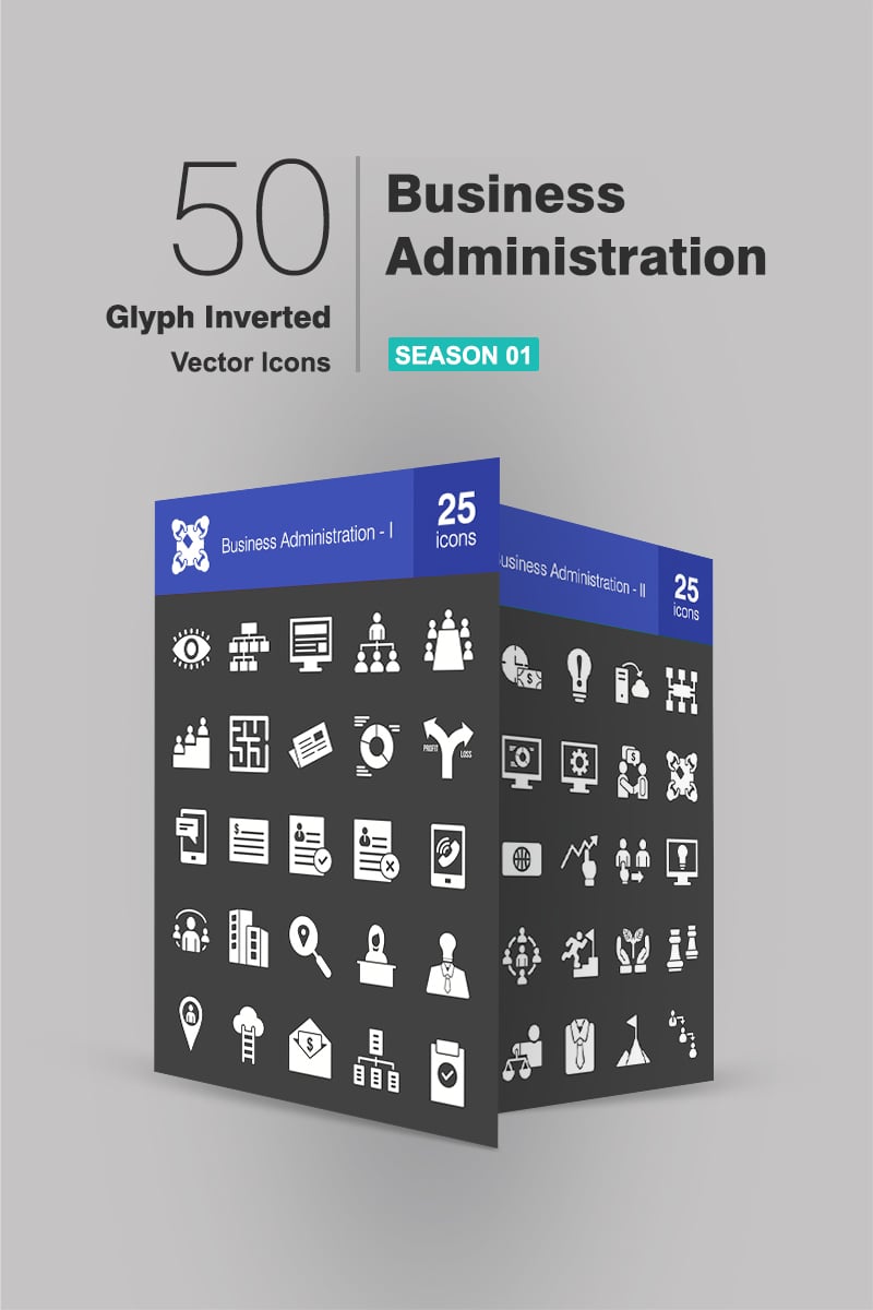 Download Набор иконок "50 Business Administration Glyph Inverted Icon Set" / 50 Business Administration Glyph Inverted Icon Set - Набор иконок на тему графика business icon administration vision conference management employee ratings profit user connections towers brainstorming reception career payment organization target information planning