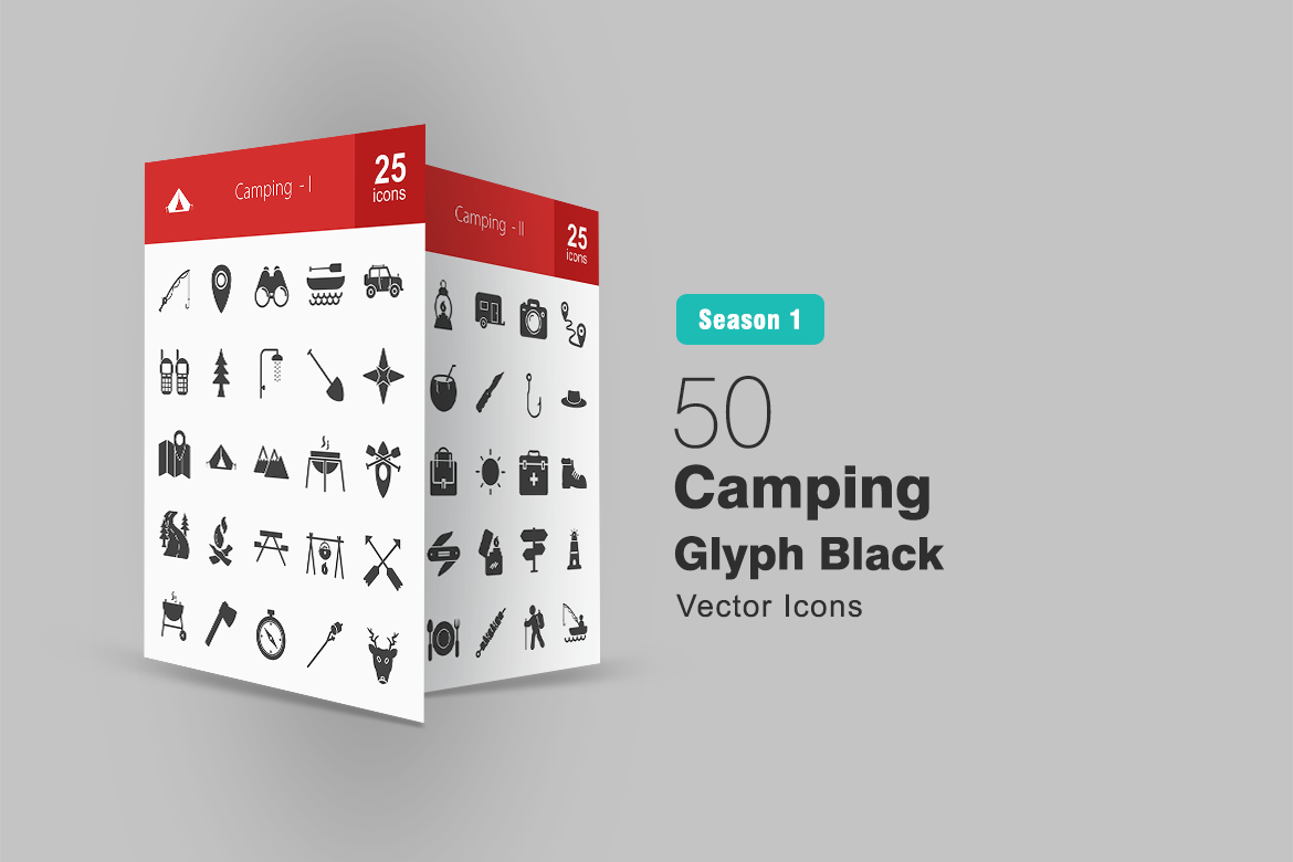 Download Набор иконок "50 Camping Glyph Icon Set" / 50 Camping Glyph Icon Set - Набор иконок на тему графика camp icon camping fishing safari shower boat maps compass trees backpack campfire hat cooking pocket knife lamp wild animal road