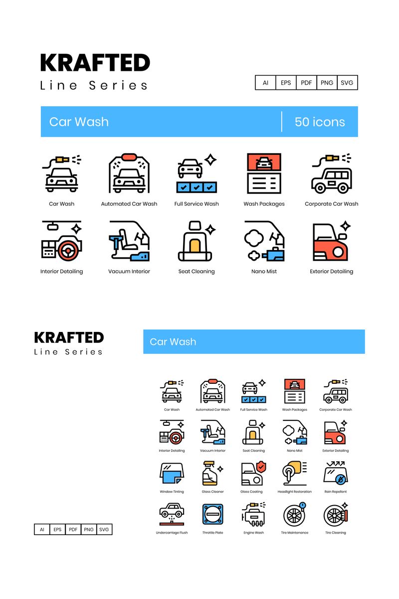Download Набор иконок "50 Car Wash Icons - Krafted Series Set" / 50 Car Wash Icons - Krafted Series Set - Набор иконок на тему графика