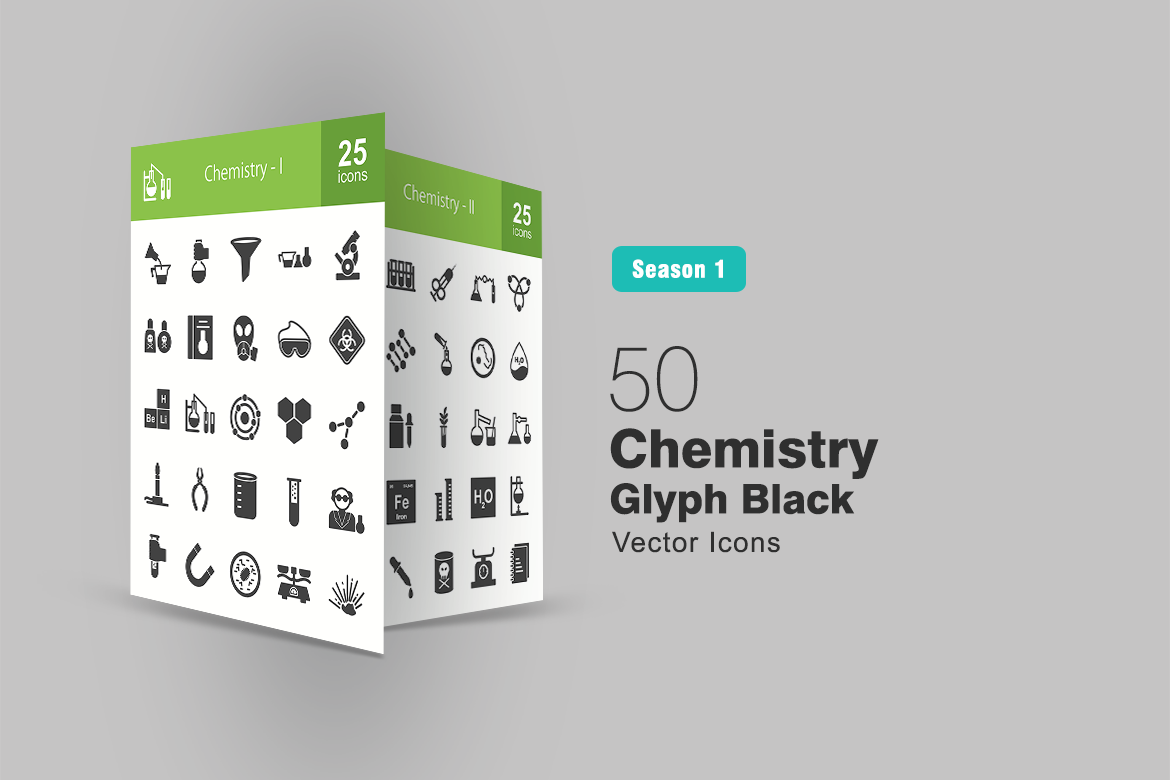 Download Набор иконок "50 Chemistry Glyph Icon Set" / 50 Chemistry Glyph Icon Set - Набор иконок на тему графика chemistry,icon,science,chemical,flask,funnel,microscope,poisonous,oxygen,mask,goggles,hazard,experiment,atom,structure,molecule,burner,tongs,beaker,scientist