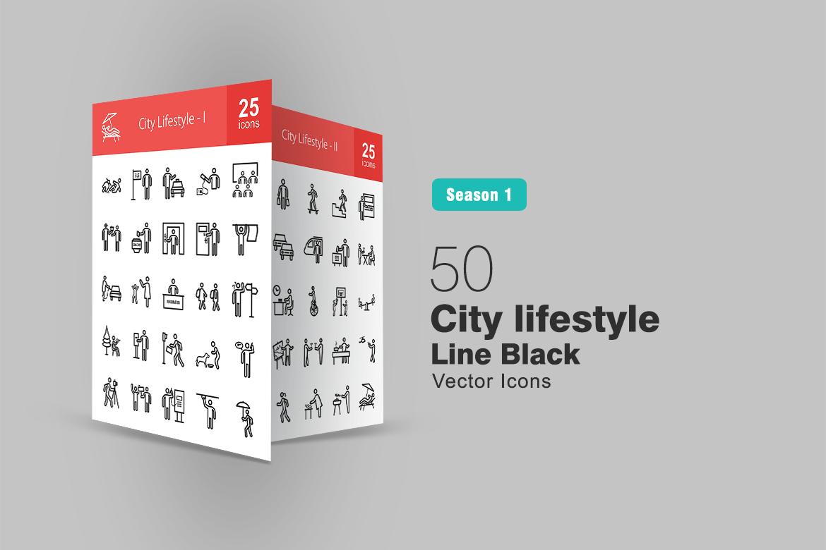 Download Набор иконок "50 City Lifestyle Line Icon Set" / 50 City Lifestyle Line Icon Set - Набор иконок на тему графика city,icon,lifestyle,swinging,charging,phone,resting,dressing,knocking,waving,cycling,going,to,school,sitting,in,park,crossing,road,feeding