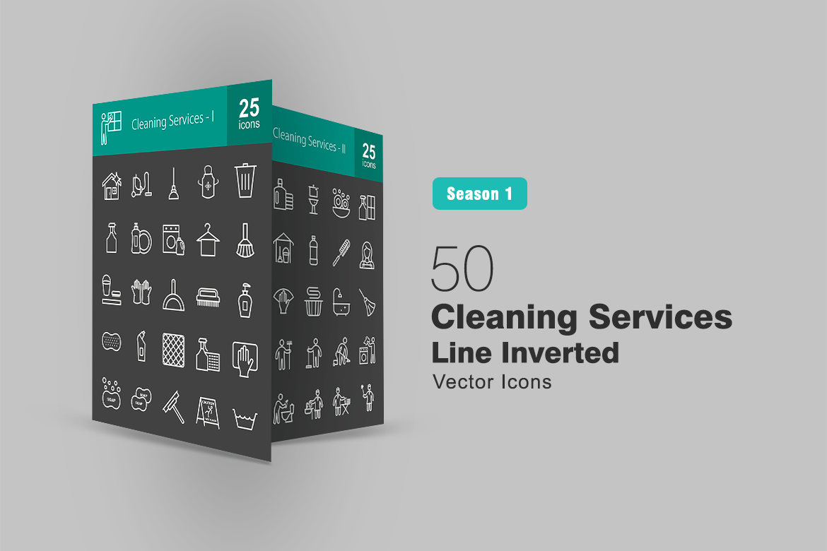 Download Набор иконок "50 Cleaning Services Line Inverted Icon Set" / 50 Cleaning Services Line Inverted Icon Set - Набор иконок на тему графика cleaning,icon,services,vaccuum,apron,trash,dishwasher,laundry,detergent,towel,broom,dustpan,scrubber,soap,spray,wiper,water,wet,dryclean,washing