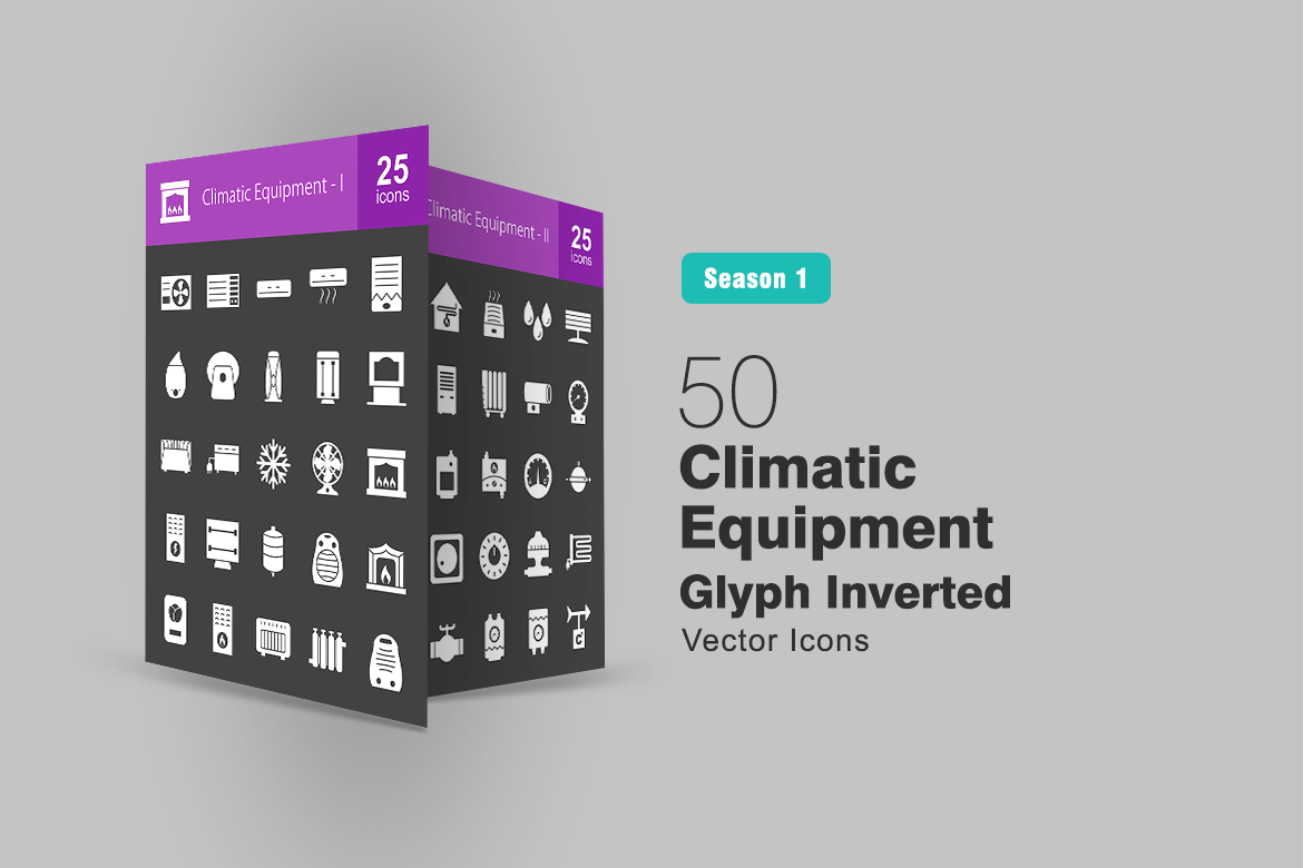 Download Набор иконок "50 Climatic Equipment Glyph Inverted Icon Set" / 50 Climatic Equipment Glyph Inverted Icon Set - Набор иконок на тему графика climate,icon,equipment,air,conditioner,purifier,sanitizer,carbon,heater,furnace,cooling,electric,fan,fireplace,tank,gas,fire,humidity,pressure,gauge