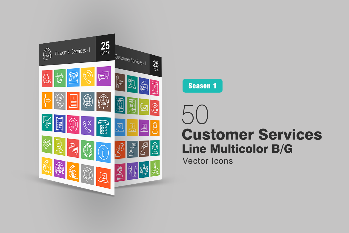 Download Набор иконок "50 Customer Services Line Multicolor B/G Icon Set" / 50 Customer Services Line Multicolor B/G Icon Set - Набор иконок на тему графика customer services icon handshake call message communicate help information support checklist configurations data global online contact us email text question
