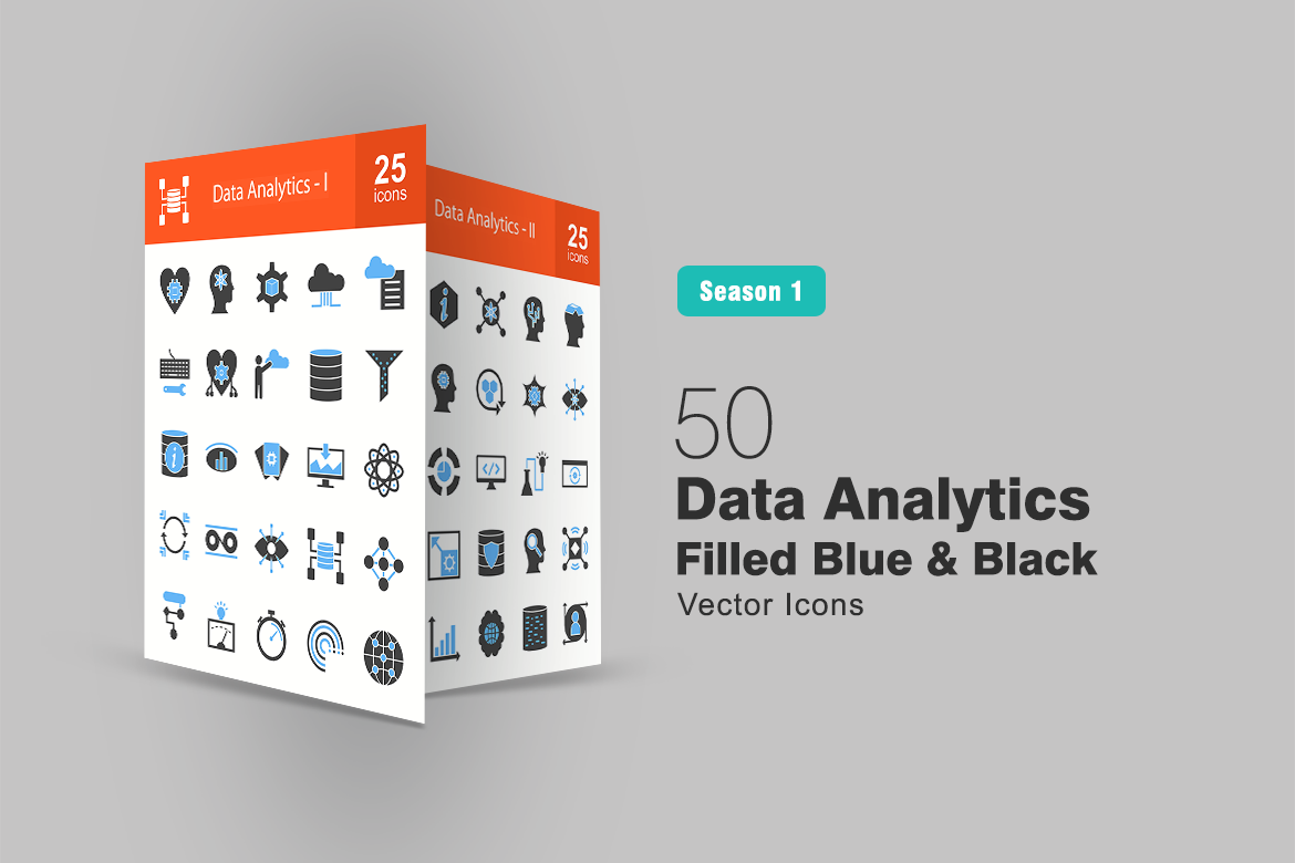 Download Набор иконок "50 Data Analytics Filled Blue & Black Icon Set" / 50 Data Analytics Filled Blue & Black Icon Set - Набор иконок на тему графика data,icon,analysis,computing,solutions,cloud,architecture,reporting,engineering,filtering,information,research,programming,system,transformation,warehouse,design,algorithm,detection,forecasti