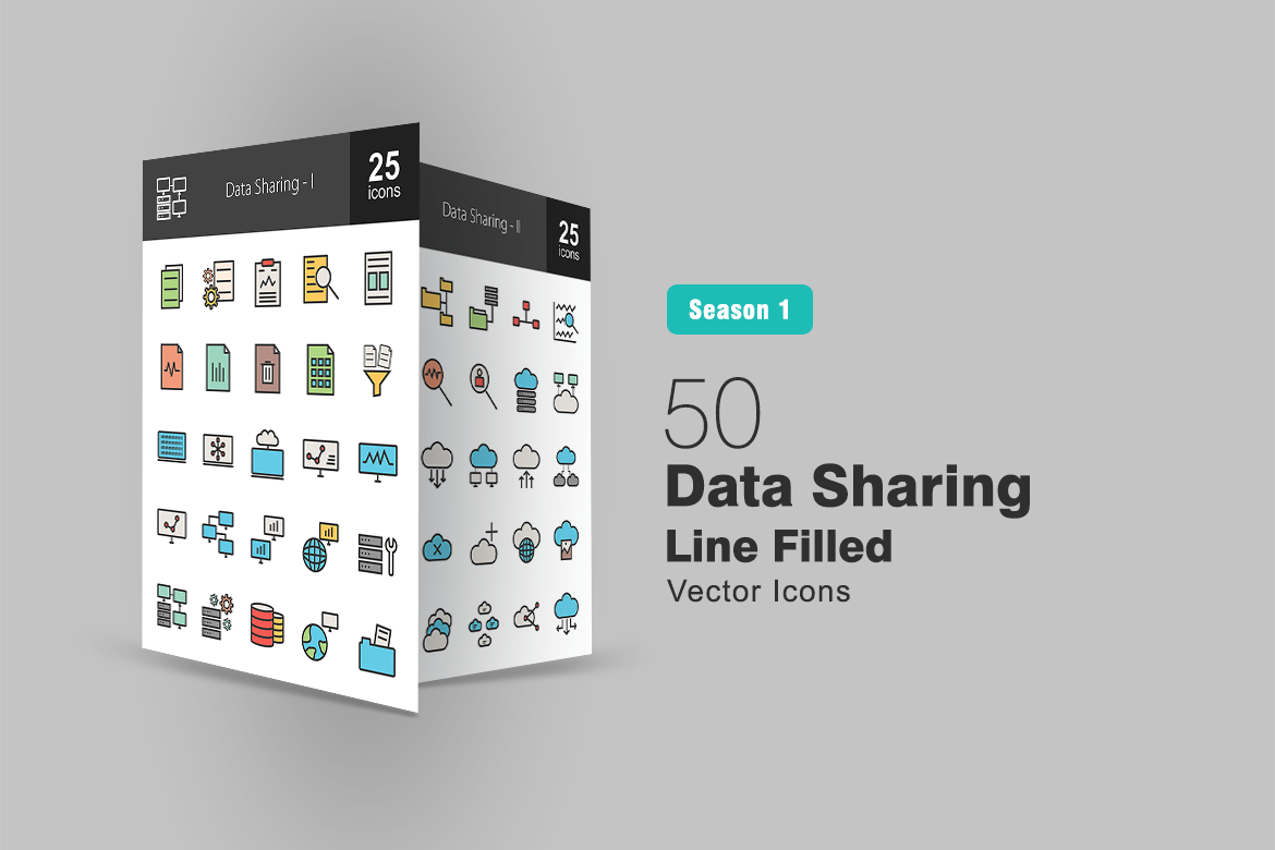 Download Набор иконок "50 Data Sharing Filled Line Icon Set" / 50 Data Sharing Filled Line Icon Set - Набор иконок на тему графика data icon sharing documents management find business charts analysis filter network cloud connection global servers file shared folders connectivity access