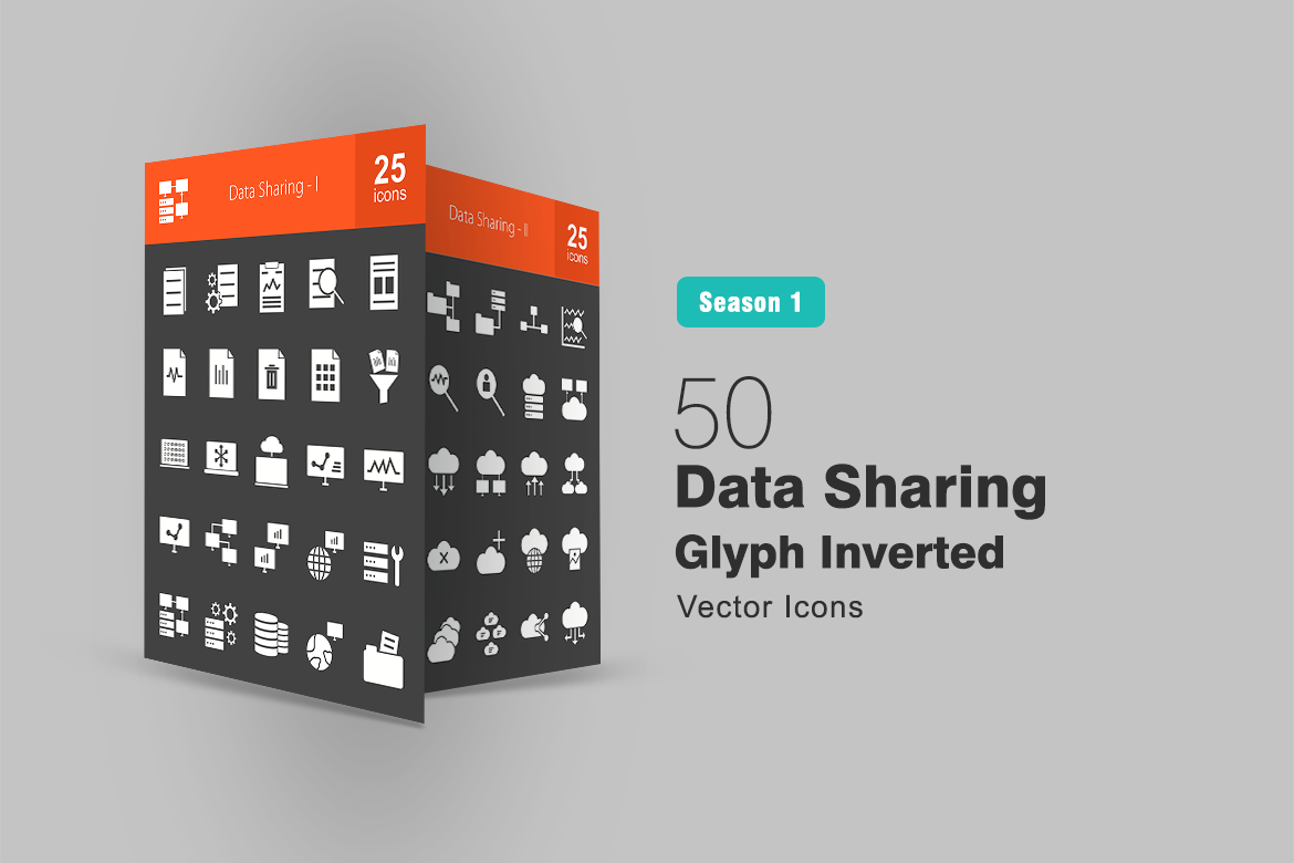 Download Набор иконок "50 Data Sharing Glyph Inverted Icon Set" / 50 Data Sharing Glyph Inverted Icon Set - Набор иконок на тему графика data icon sharing documents management find business charts analysis filter network cloud connection global servers file shared folders connectivity access