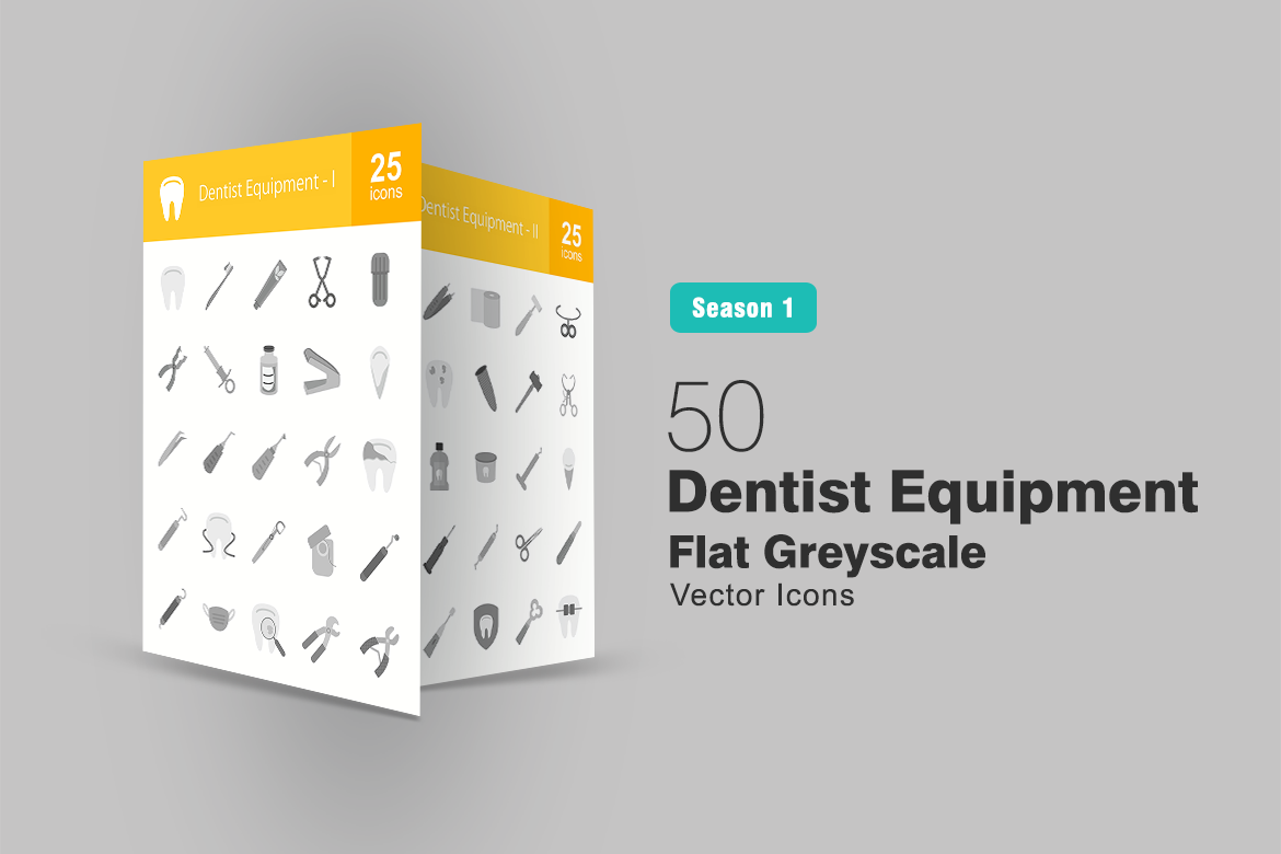 Download Набор иконок "50 Dentist Equipment Flat Greyscale Icon Set" / 50 Dentist Equipment Flat Greyscale Icon Set - Набор иконок на тему графика dentist,icon,dental,tooth,paste,brush,clamps,capsule,pliers,syringe,anaesthetic,crane,floss,probe,mask,examine,extract,forceps,gauze,hammer