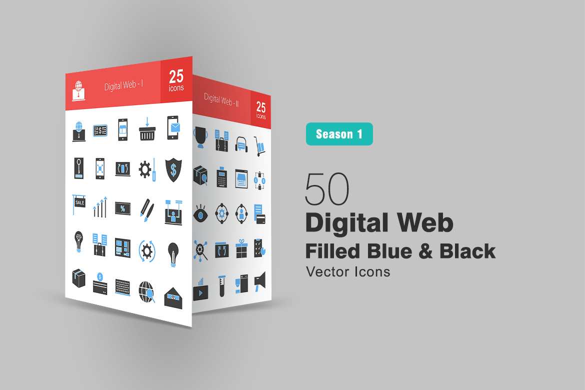 Download Набор иконок "50 Digital Web Filled Blue & Black Icon Set" / 50 Digital Web Filled Blue & Black Icon Set - Набор иконок на тему графика digital icon web commerce currency shopping emails keywording mobile marketing synchronization services insurance sale revenue discount design idea user experience