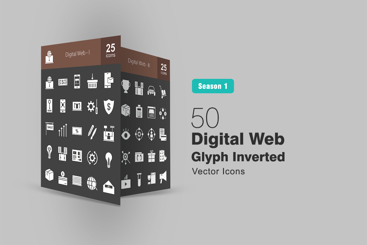 Download Набор иконок "50 Digital Web Glyph Inverted Icon Set" / 50 Digital Web Glyph Inverted Icon Set - Набор иконок на тему графика digital icon web commerce currency shopping emails keywording mobile marketing synchronization services insurance sale revenue discount design idea user experience